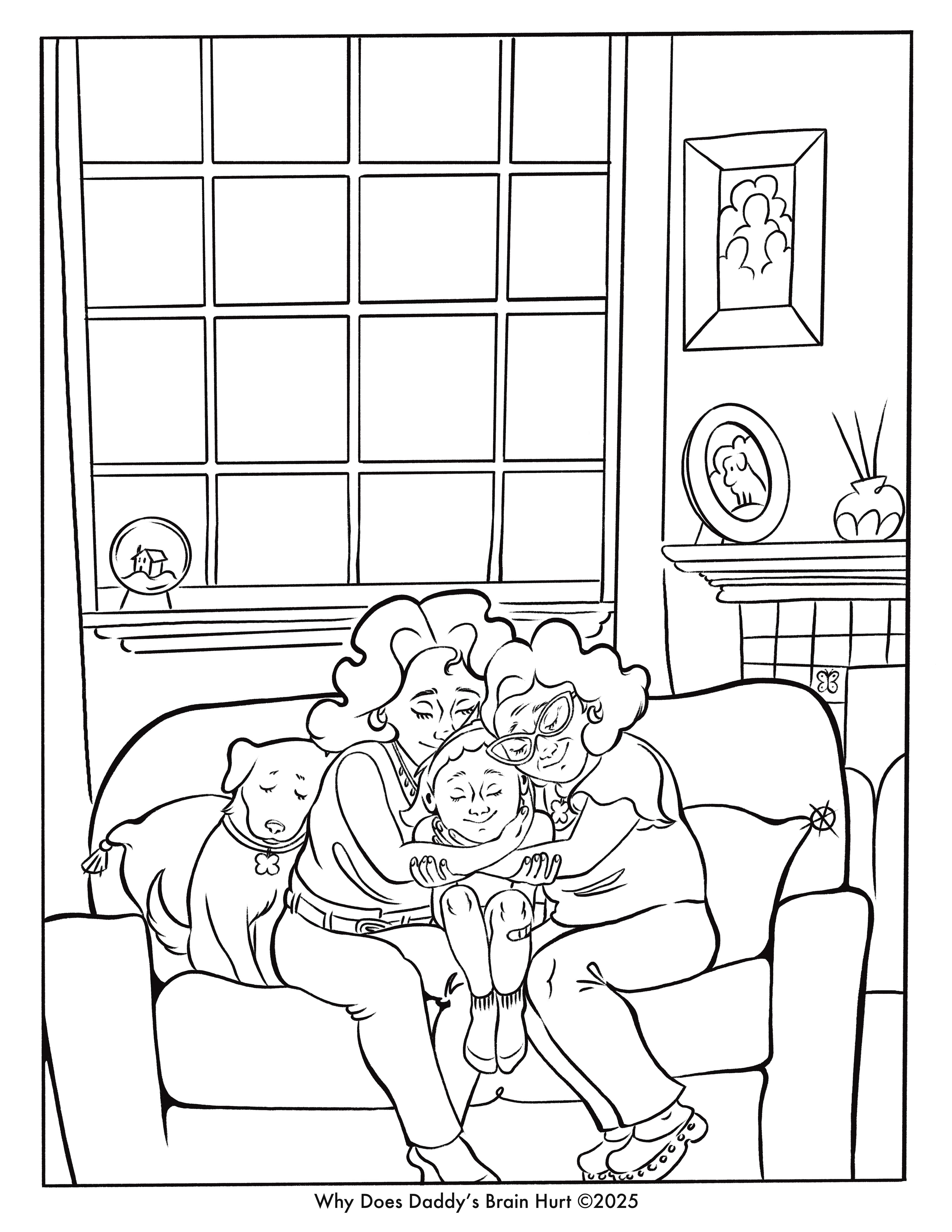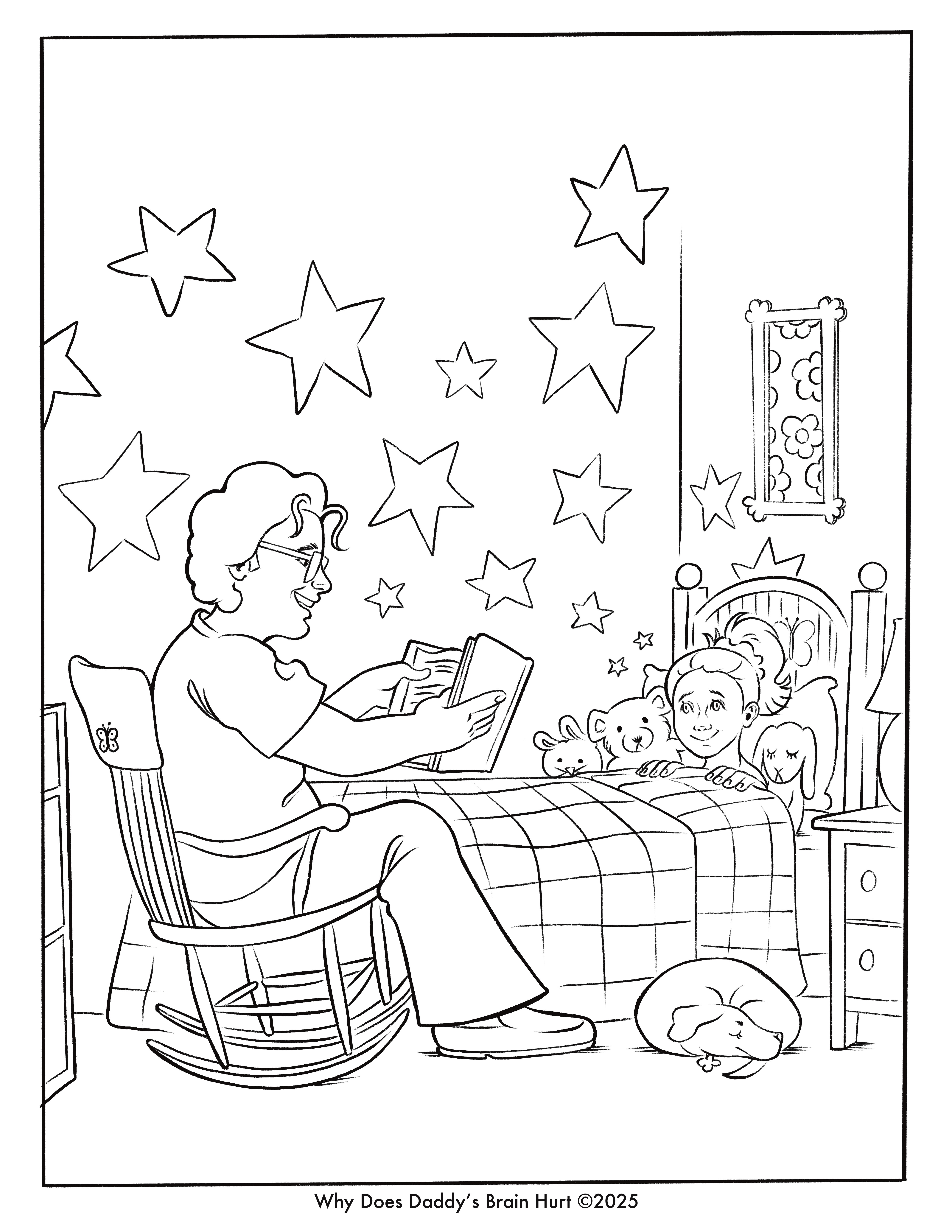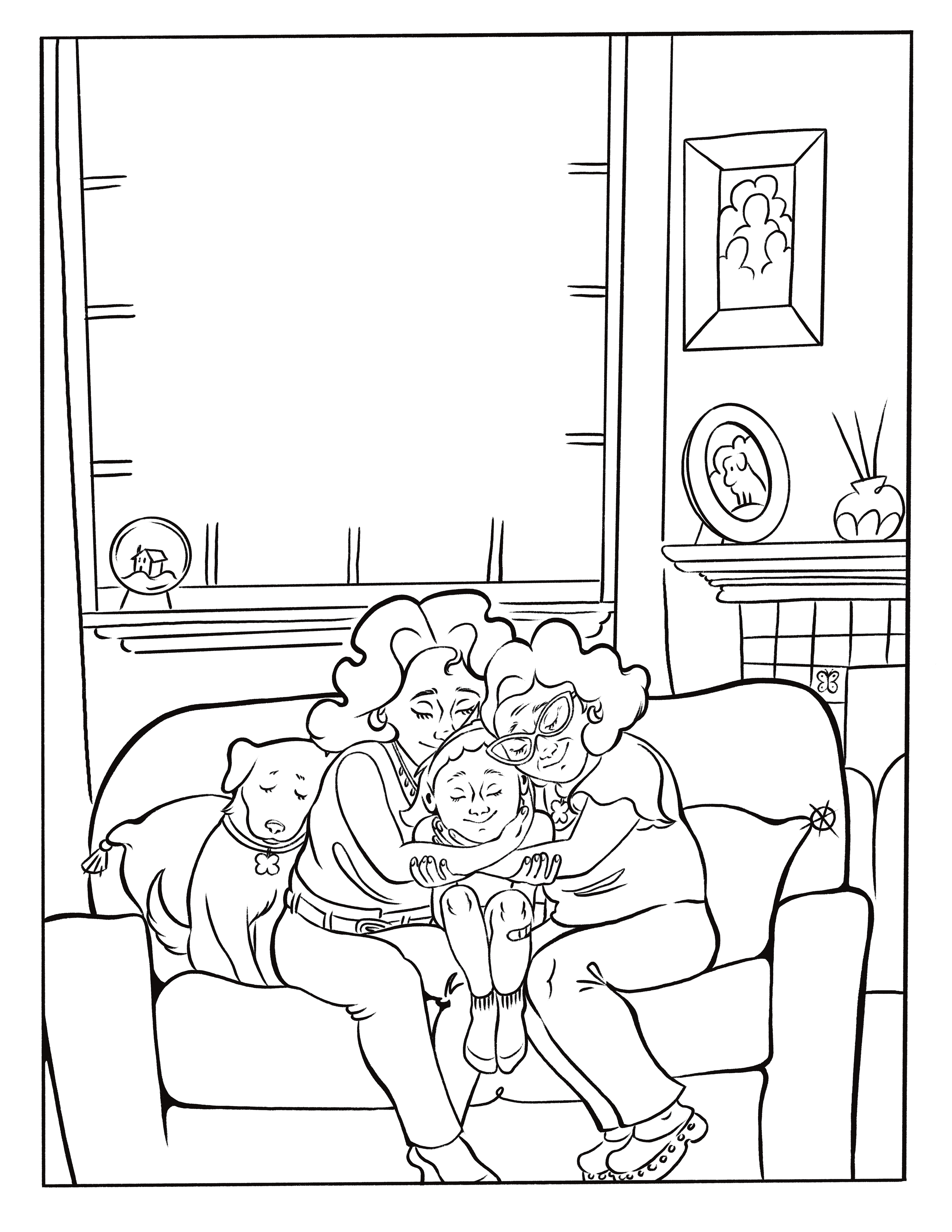 אבא קורא סיפור לליזי במיטה המשפחה בסלון המשפחה על הספה חיבוק משפחתי ארוחת בנות ליזי ווינס ליזי, אמא, סבתא ווינס על הספה